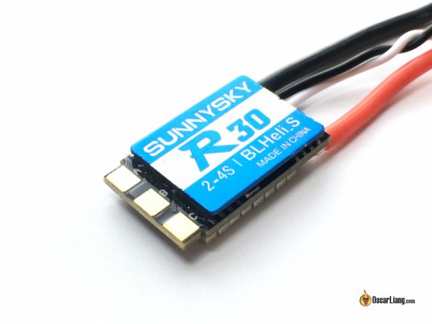 Sunnysky R30A — довольно мелкий и легкий регулятор для мини коптеров. У него прошивка BLHeli_S, основан на микроконтроллере BB2 и поддерживает протоколы DShot600 и Multishot.